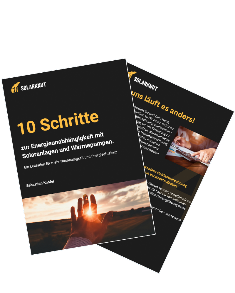 Und finde heraus, wie Du in 10 Schritten mit Solaranlagen und Wärmepumpen nachhaltige Energie erzeugst, Deine Kosten senkst und einen wertvollen Beitrag zum Klimaschutz leistest.